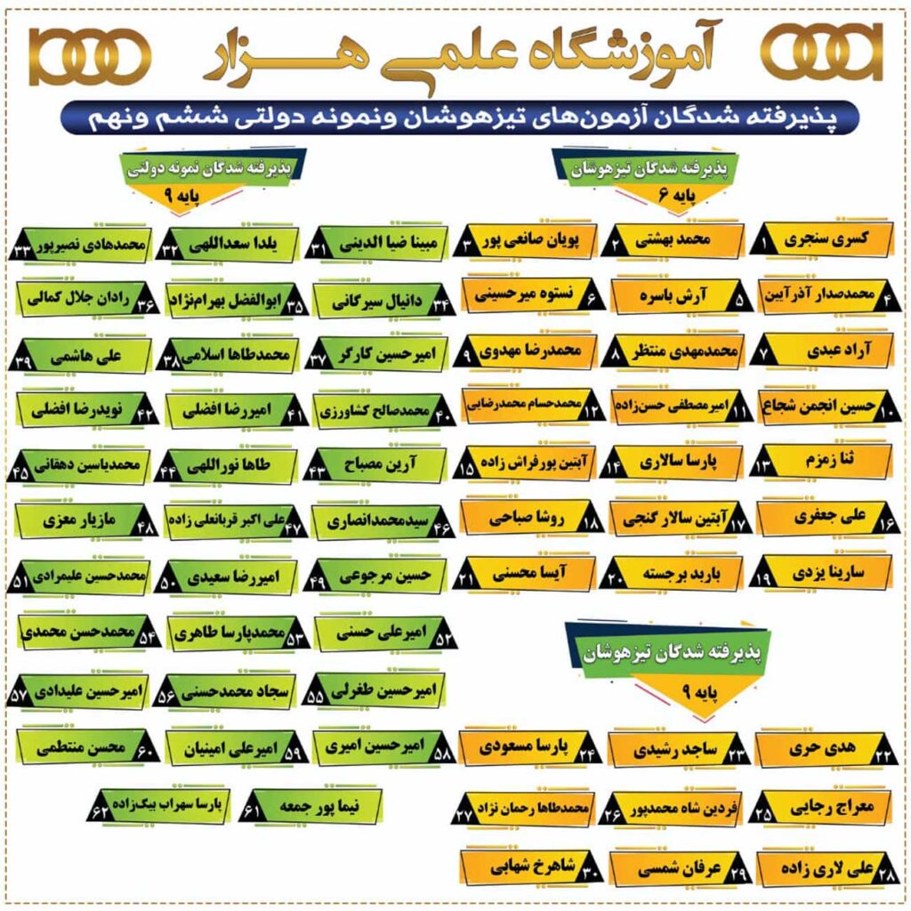 کسری سنجری – محمد بهشتی – پویان صانعی پور -محمد صدرا آذر آیین – آرش باسره – نستوه میر حسینی -آراد عبدی -محمدمهدی منتظر – محمدرضا مهدوی -حسین انجم شعاع -امیرمصطفی حسن زاده -محمد حسام محمدرضایی -ثنا زمزم – پارسا سالاری – ابتین پورفراش زاده – علی جعفری – آبتین سالار گنجی – روشا صباحی – سارینا یزدی – باربد برجسته -آیسا محسنی