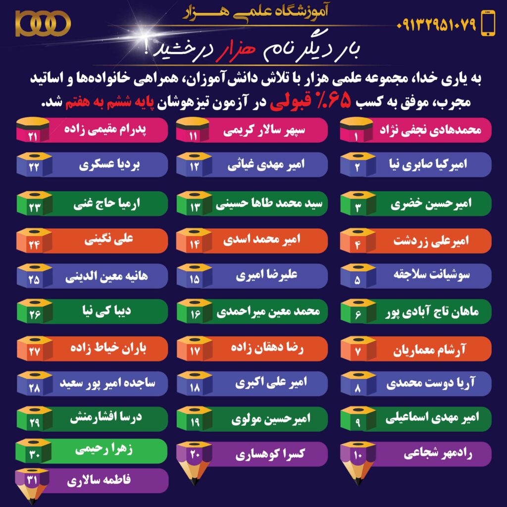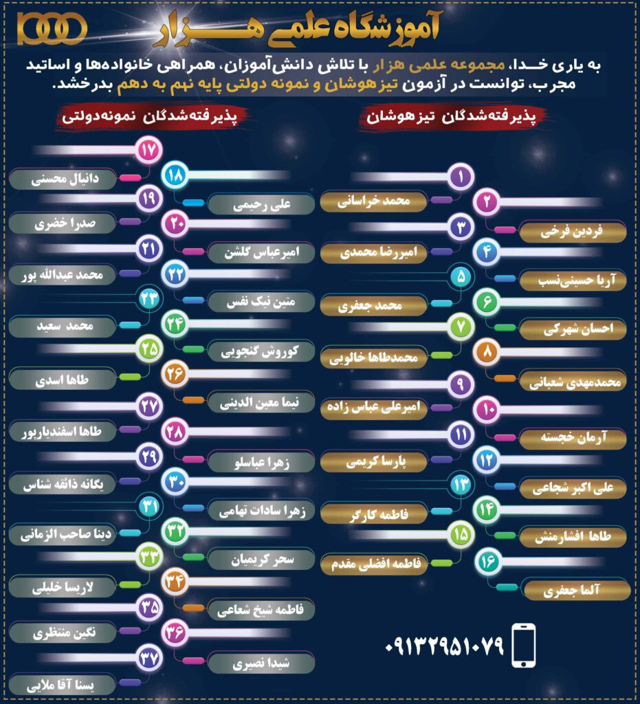 محمد هادی نجفی نژاد -امیرکیا صابری نیا -امیرحسین خضری -امیرعلی زردشت-سوشیانت سلاجقه – ماهان تاج آبادی پور – آرشام معماریان – آریا دوست محمدی – امیرمهدی اسماعیلی – رادمهر شجاعی – سپهر سالار کریمی – امیرمهدی غیاثی – سید محمد طاها حسینی – امیرمحمد اسدی – علیرضا امیری – محمد معین میراحمدی – رضا دهقان زاده -امیرعلی اکبری – امیرحسین مولوی – کسرا کوهساری – پدرام مقیمی زاده – بردیا عسکری – ارمیا حاج غنی – علی نگینی – هانیه معین الدینی – دیبا کی نیا – باران خیاط زاده – ساجده امیرپورسعید -درسا افشار منش – زهرا رحیمی -فاطمه سالاری